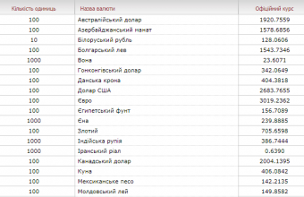 Такі дані опублікували на сайті Національного банку України.