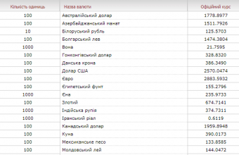 Національний банк України зафіксував офіційний курс гривні на рівні 25,7005 гривні за долар (у середу – 28,5606) та 28,8359 – за євро (напередодні – 28,5606).