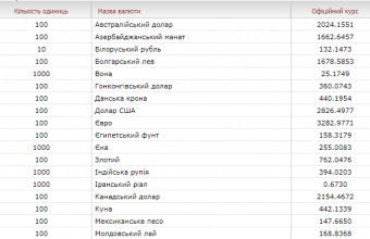 Національний банк України зафіксував офіційний курс гривні на рівні 28,2649 за долар (в п’ятницю – 28,2246) та 32,8297 – за євро (в п’ятницю – 32,8365).