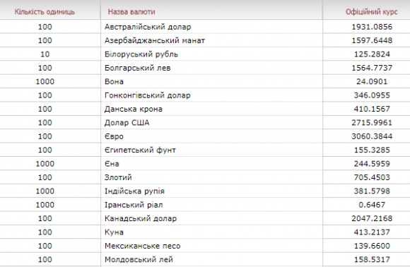 Національний банк України зафіксував офіційний курс гривні на рівні 27,15 за долар та 30,6 за євро.