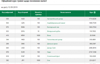 Національний банк України зафіксував офіційний курс гривні на рівні 24,9688 гривні за долар (у середу – 24,8823) та 27,4732 – за євро (напередодні – 27,47).
