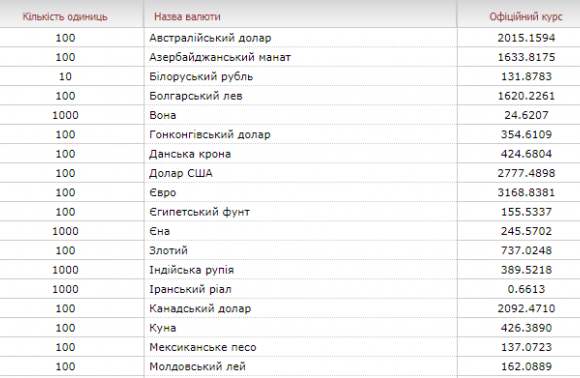Національний банк України зафіксував офіційний курс гривні на рівні 27,7749 за долар (у середу – 27,7639) та 31,6884 за євро (напередодні – 31,7091).