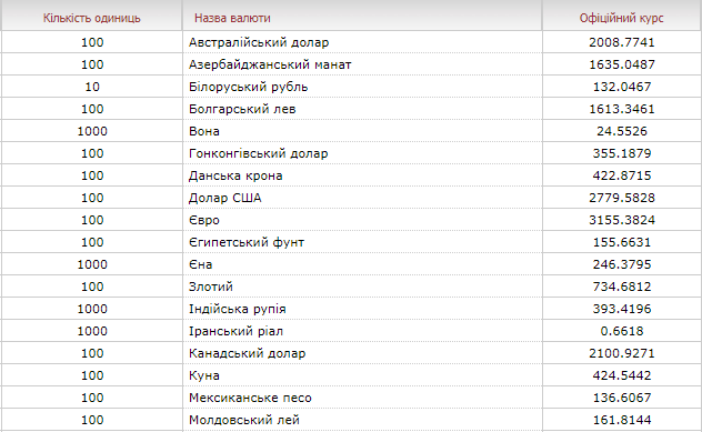 Такі дані опублікували на сайті Національного банку України.