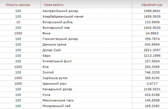 Національний банк України зафіксував офіційний курс гривні на рівні 28,2131 за долар (у середу – 28,1494) та 32,1319 – за євро (у середу – 32,3099).