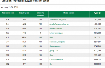 Національний банк України зафіксував офіційний курс гривні на рівні 25,2219 гривні за долар (у середу – 25,1649) та 27,9534 – за євро (напередодні – 27,9431).