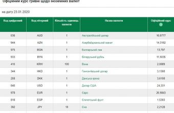 Національний банк України зафіксував офіційний курс гривні на рівні 24,331 гривні за долар (у середу – 24,2586) та 26,9843 – за євро (напередодні – 26,9695).