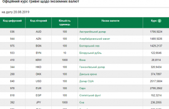 Національний банк України зафіксував офіційний курс гривні на рівні 25,1757 гривні за долар (у понеділок – 25,1428) та 27,952562 – за євро (напередодні – 27,8482).