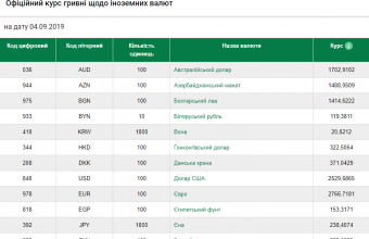 Такі дані опублікували на сайті Національного банку України.