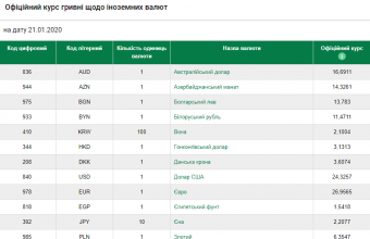 Як інформував «Щоденний Львів», 20 січня Національний банк України послабив офіційний курс гривні на 20 копійок.