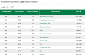 Національний банк України зафіксував офіційний курс гривні на рівні 24,0538 гривні за долар (у понеділок – 24,1643) та 26,4784 – за євро (напередодні – 26,7208).