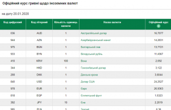 Такі дані оприлюднили на сайті Національного банку України.
