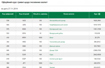 Національний банк України зафіксував офіційний курс гривні на рівні 23,9827 гривні за долар (у вівторок – 24,0538) та 26,4289 – за євро (напередодні – 26,4784).