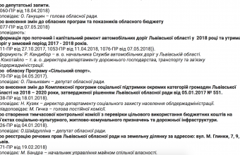 Депутати обговорять інформації про припинення комунального закладу Львівської обласної ради "Львівська обласна психолого-медико-педагогічна консультація" (924-ПР від 29.12.2017, 933-ПР від 17.01.2018) та про результати комплексної перевірки діяльності Інспекції державного архітектурно-будівельного контролю у м.Львові.