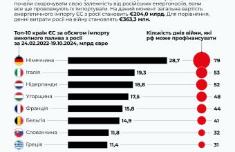 Країни ЄС оплатили росії 1,5 року війни проти України. Хто скільки