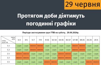Аналогічний графік припинення енергопостачання діє 28 червня.
