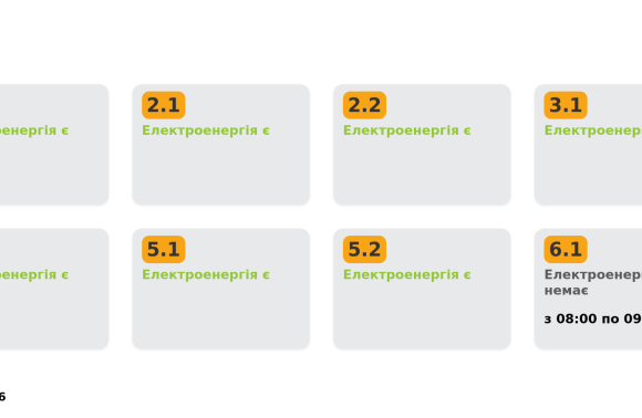 Група 6.1. Електроенергії немає з 08:00 до 09:00.
