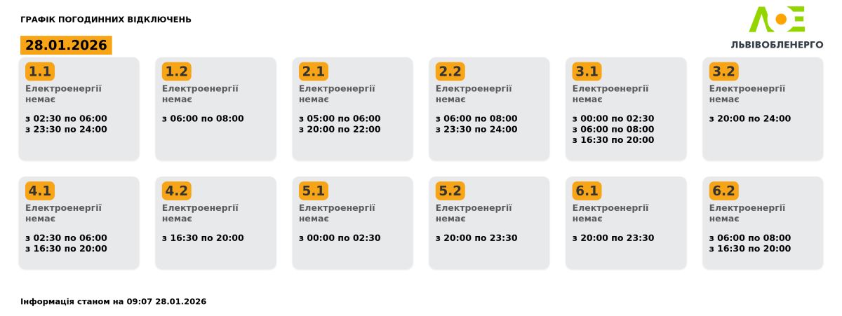 Львівобленерго суттєво скоротило графіки відключень на 28 січня