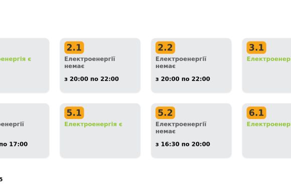 Група 2.1. Електроенергії немає з 20:00 до 22:00.