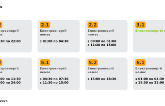 Група 6.2. Електроенергії немає з 09:00 до 11:30, з 22:00 до 24:00.