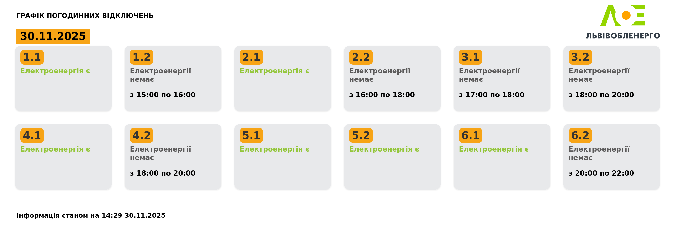 Підгрупа 5.2 вже шоста за ліком, яка 30 листопада здобуває безперебійне електропостачання.