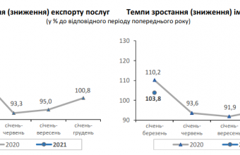 Порівняно зі січнем–березнем 2020 року експорт послуг збільшився на 22,0%, імпорт – на 3,8%. Позитивне сальдо зовнішньої торгівлі послугами склало 166,1млн.дол.