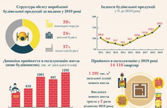 У структурі будівельної продукції у 2019 році 39% припало на будівництво інженерних споруд, 37% - на нежитлові будівлі, чверть - на житлові будинки.