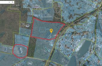 На скріні із кадастрової карти позначив ділянки, про які мова - там, де прапорець. Більша - виділена червоним і менша – всередині. Для мешканців Брюховичів уточню: ліворуч нижче – «списана» школа (теж обкреслив червоним). Для не мешканців Брюховичів скажу інакше: це фактично центр села, неподалік від озера, про яке ви точно чули або й були там.
