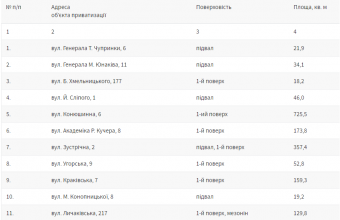 Фрагмент «Переліку об’єктів малої приватизації комунальної власності територіальної громади Львова, які підлягають приватизації у 2020 році способом аукціону».