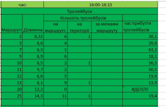 Тролейбусний маршрут №2: орієнтовний час прибуття тролейбуса на зупинку – 20 хвилин, на маршруті – шість вагонів.