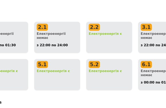 Група 2.1. Електроенергії немає з 22:00 до 24:00.