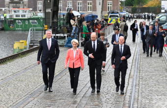 Берлін, Німеччина, 25.10.2022. Канцлер Німеччини Олаф Шольц , Президент Європейської Комісії Урсула фон дер Ляєн, Генеральний секретар ОЕСР Матіас Корманн , прем’єр-міністр України Денис ШмигальPAP/Marcin Bielecki