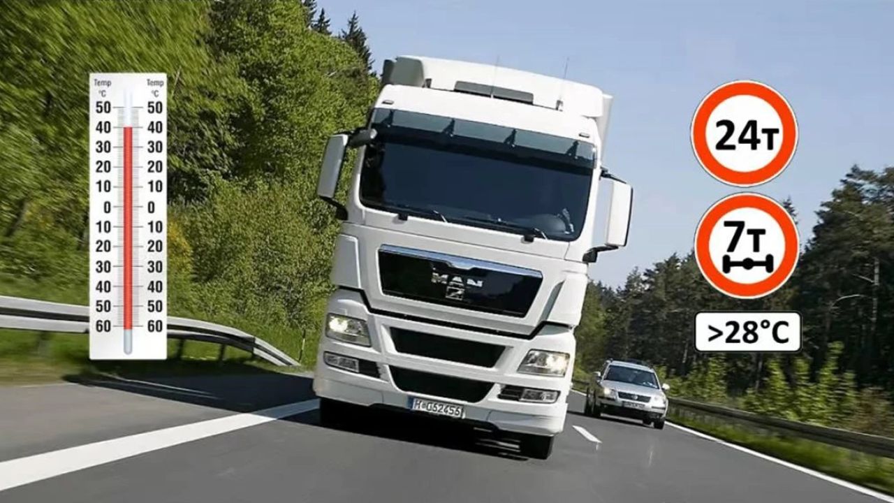 Такі обмеження діятимуть у денний час доби, коли температура повітря перевищуватиме +28°C. Їх впровадили задля збереження дорожнього покриття, яке у спекотну пору особливо вразливе до значних навантажень.