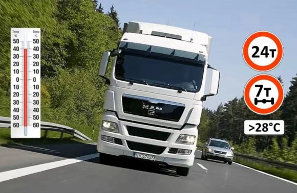 Такі обмеження діятимуть у денний час доби, коли температура повітря перевищуватиме +28°C. Їх впровадили задля збереження дорожнього покриття, яке у спекотну пору особливо вразливе до значних навантажень.