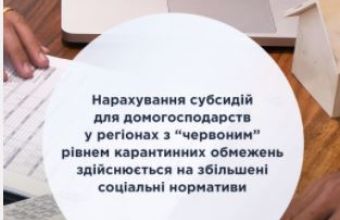 Таким чином, у жовтні-листопаді для домогосподарств у регіонах з «червоним» рівнем карантинних обмежень розрахунок субсидії на зазначені послуги буде здійснено на збільшені соціальні нормативи.