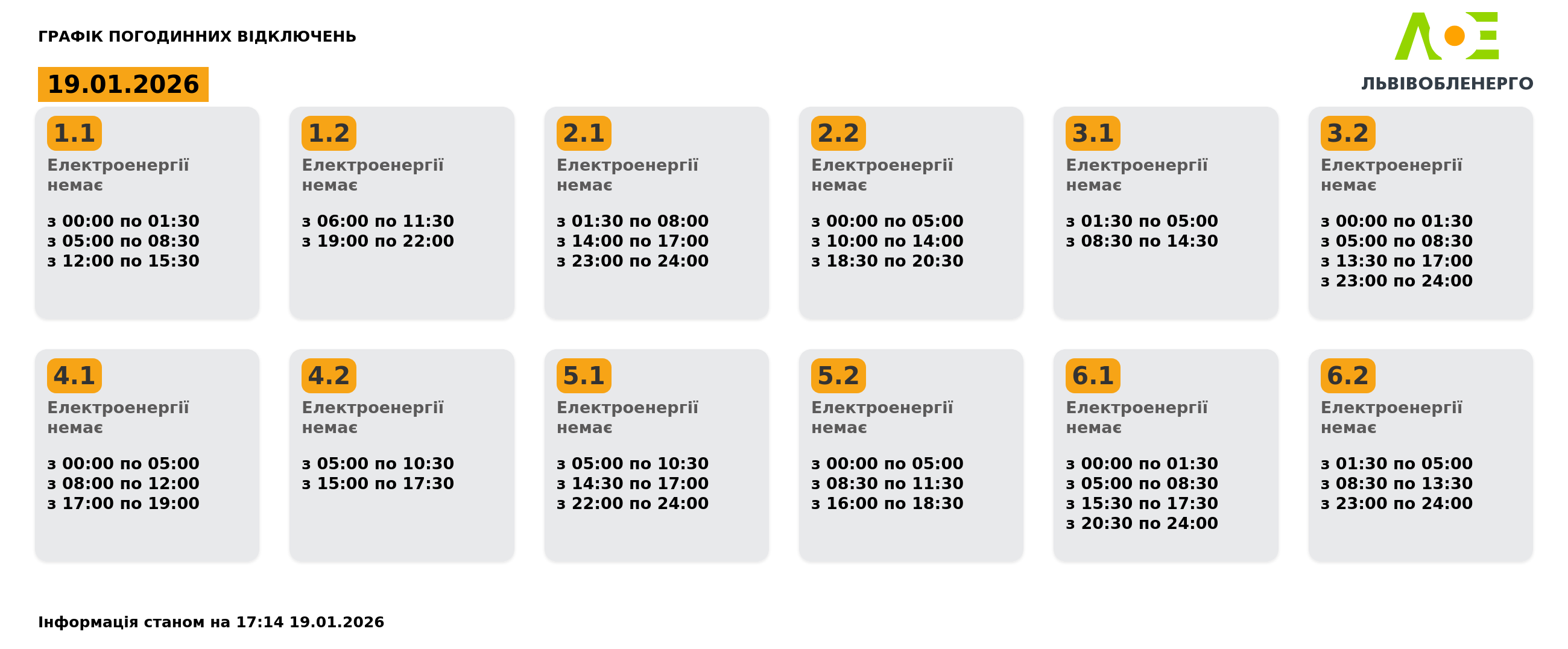Графік погодинних відключень на 19.01.2026