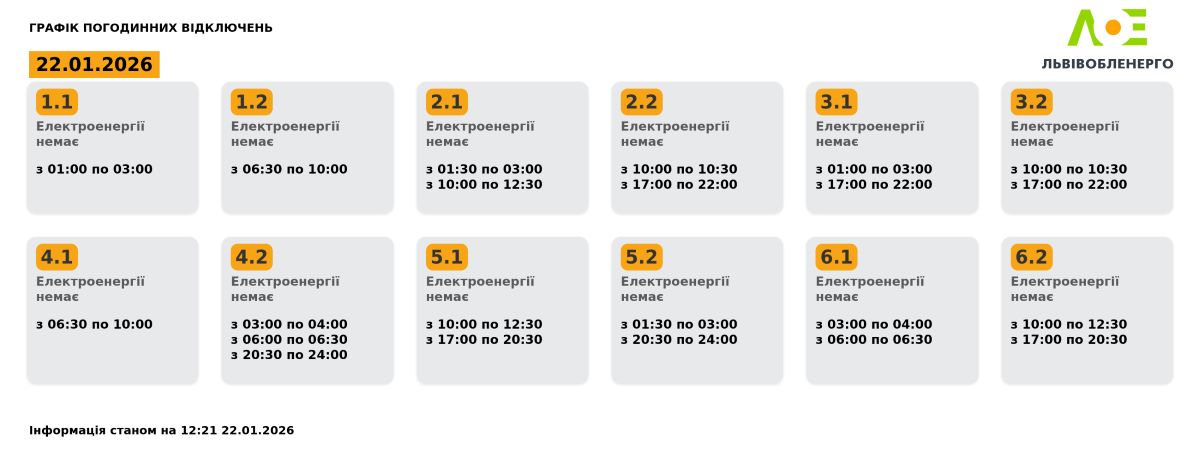 На Львівщині знову скоротили відключення для всіх груп споживачів. Новий графік 22 січня