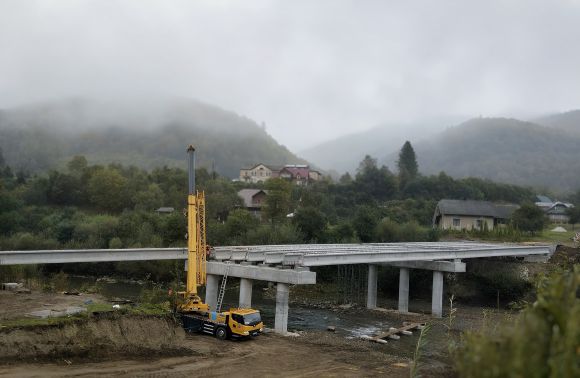 На автошляху Т-14-24 Сколе – Славське у населеному пункті Гребенів зводять мостовий перехід через річку Опір.