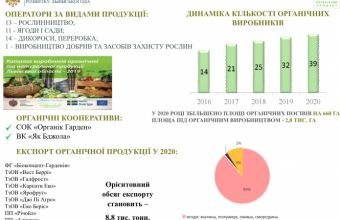 «Станом на 2020 рік зареєстровано 39 господарств органічного напрямку. Це невелика кількість з огляду на те, що всього у нас працює близько 800 суб’єктів господарювання, але динаміка позитивна», – сказала директор Департаменту агропромислового розвитку Львівської ОДА Тетяна Гетьман.