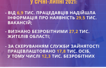 – за сприяння служби зайнятості роботу в області шукали 19,5 тис. безробітних;