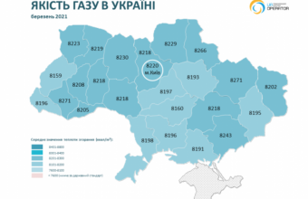 Середньозважена теплота згоряння природного газу, який подавався споживачам України в березні 2021 року, становить 8 214 ккал/м3 (при нормі стандарту 7 600 ккал/м3).
