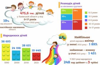 У Львівській області на початок 2022 року проживало 475,6 тис. дітей у віці до 17 років.