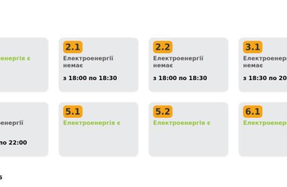 Група 2.1. Електроенергії немає з 18:00 до 18:30.