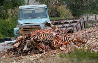 На Жовківському костомельному заводі на Львівщині перестали утилізовувати рештки мертвих тварин. На подвір'ї підприємства лежить дохлятина. Кістко-дробильні машини розібрані на металобрухт. Крематорії, в яких мали спалювати хворих тварин, не працюють. Два роки тому на підприємстві відключили газ.
