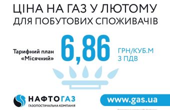 У лютому він продаватиме кубометр газу за ціною 6 гривень 86 копійок, пише DailyLviv.