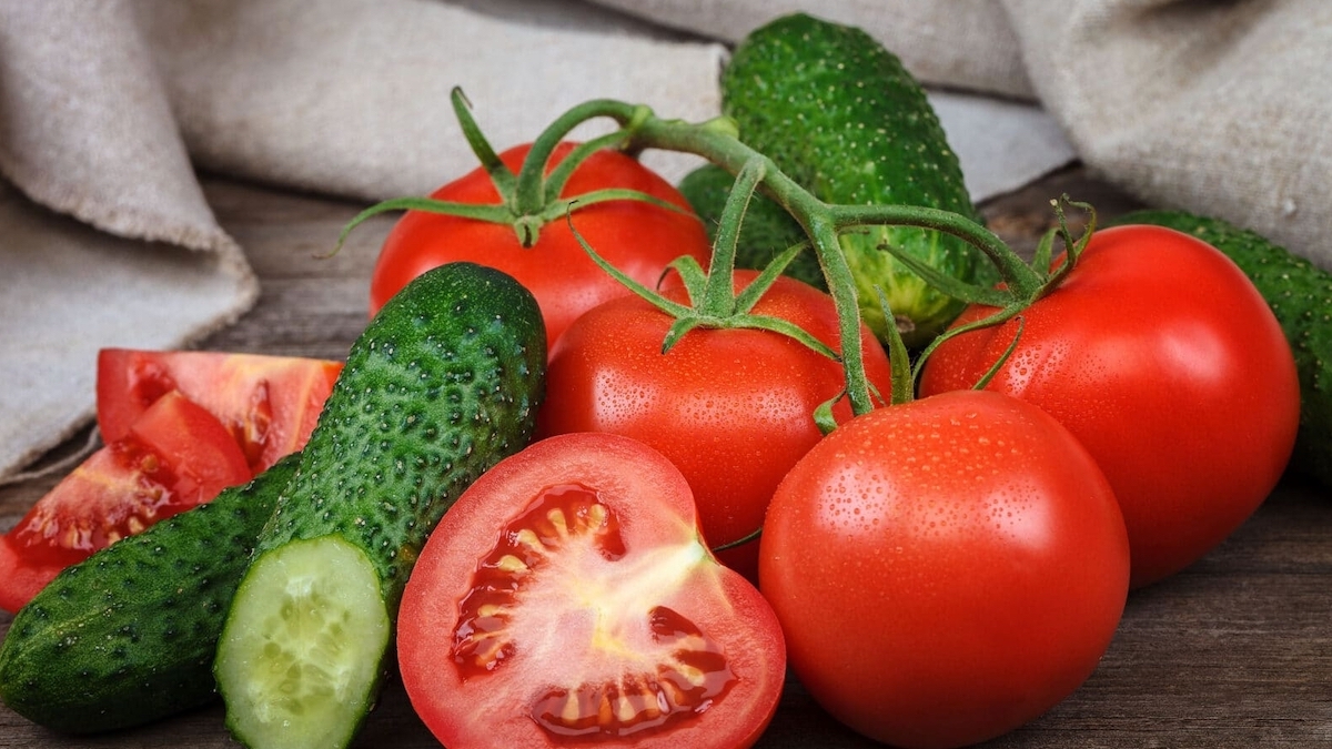 Після цього - огірки і помідори.
