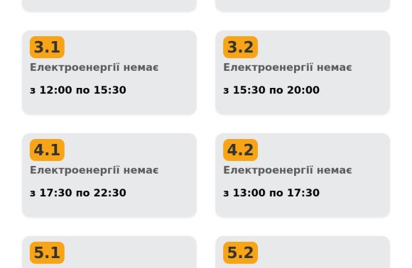 Сумарно група 5.2 не матиме світла у суботу впродовж 5,5 години.