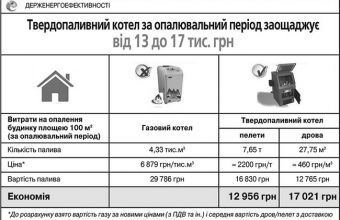 За середньостатистичною інформацією, встановивши твердопаливний котел, родина зможе заощадити близько 17 тисячі гривень протягом опалювального сезону. Наприклад, витрати домогосподарства на опалення будинку 100 квадратних метрів в опалювальний період, за новими цінами на газ, складуть близько 29 тисяч гривень, а витрати на опалення дровами – близько 12 тисяч гривень. Про це повідомили сьогодні, 9 серпня, в київському часописі «День».