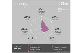 За даними звіту, в загальному рейтингу конкурентоспроможності Україна посіла 79 місце з 140 країн. Торік Україна була на 76 позначці.