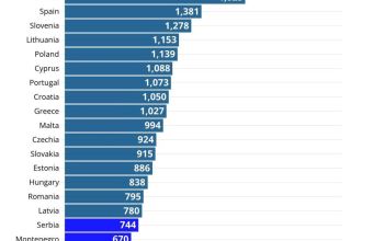 Молдова (319 євро) та Албанія (517 євро) також мають значно нижчі показники порівняно навіть з найбіднішими членами ЄС (наприклад, Болгарія — 620 євро).