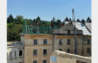 У будинку на вул. Стрийській, 68 робітники монтують дерев’яний каркас майбутнього даху. Ці роботи триватимуть щонайменше тиждень. Також тривають роботи на інших трьох сусідніх будинках.